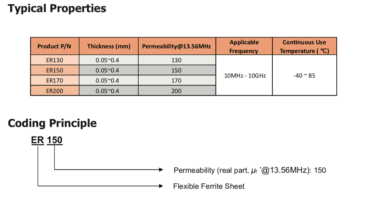 TM ER系列是一種薄的燒結(jié)高磁導(dǎo)率鐵氧體板,封裝在PET薄膜和壓敏粘合劑之間。該產(chǎn)品有效解決了金屬環(huán)境對(duì)RX天線模塊的干擾影響。" />